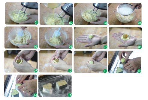 14.用这个方法做好其他的凤梨酥。将凤梨酥连同模具一起放入烤箱,175℃,15分钟左右,烤到表面金黄即可。取出来冷却以后即可脱模。脱模冷却后,密封放置4个小时以后再食用,口感更佳。