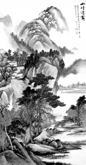 湖帆画山水,以云气胜,往往展纸挥毫,先以大笔泼墨,稍干,用普通笔蘸淡墨略加渲染,寥寥数笔,已神定气足。一经裱托,精神倍出,耐人寻味。他这种奇妙熟练的画技,他人学之什九不成。