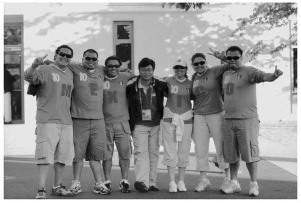 世界杯就是世界各地球迷的大舞台。看这六个墨西哥球迷,每个人在衣服上负责一个字母,加在一起,构成了墨西哥的国名,绝对自得其乐。而到了赛场上,这包装,也容易让摄像机找到他们,然后,在全世界球迷面前,露一小脸。
