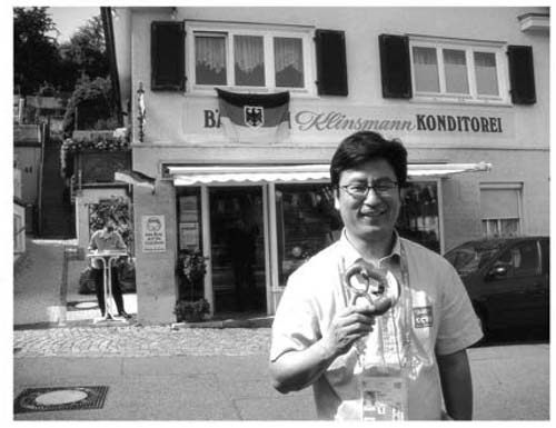 我身后是2006年德国队主教练克林斯曼的父母开的面包房,生意极好。那些光顾的客人告诉我,他们喜欢这里,不是因为克林斯曼,而是这里的面包真的很好吃。同时我注意到,克帅的父母看儿子的世界杯比赛,只是在一台十四寸的小电视上。