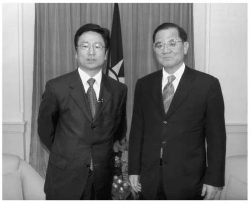 在采访中连战对我骄傲地说,原来国民党和民进党的支持率差不多,但他从大陆回来后这几个月,国民党的支持率已达到34%,民进党只有19%。所以照片上的连战虽然已要卸任党主席,但似乎有着更自信的表情。