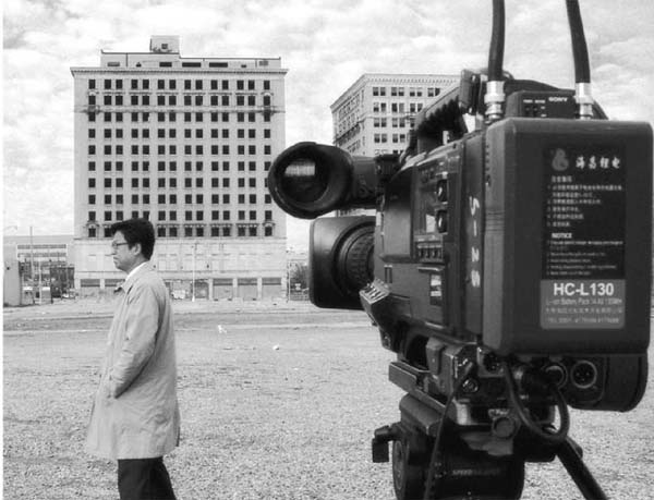 这是底特律的市中心。照片上两栋大楼,早已荒废,连一扇窗户都没有,步入其中,像走进一个恐怖片的片场,听得到自己心跳的回声。这样的楼,在底特律还有很多。从照片上的表情看,我也挺犹豫:这资本主义的另一面,咱是反映还是不反映?会不会有看人家笑话的“小人心态”?
