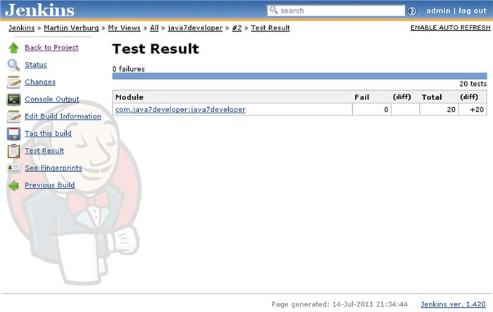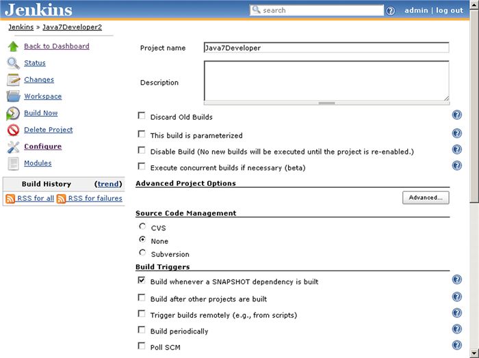 我们对运行失败和成功构建的基础都进行了总结。对于java7developer项目来说,Jenkins会继续轮询SVN并在发现新提交时执行新构建。