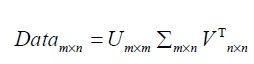 不同的矩阵分解技术具有不同的性质,其中有些更适合于某个应用,有些则更适合于其他应用。最常见的一种矩阵分解技术就是SVD。SVD将原始的数据集矩阵Data分解成三个矩阵U、Σ和VT。如果原始矩阵Data是m行n列,那么U、Σ和VT就分别是m行m列、m行n列和n行n列。为了清晰起见,上述过程可以写成如下一行(下标为矩阵维数):