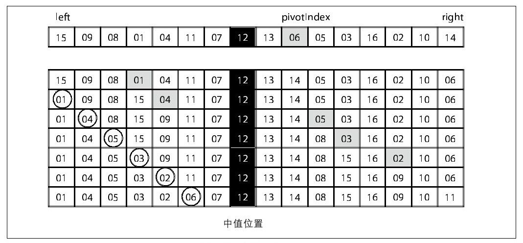 选择的中值元素是第k个值(回忆一下数组索引是从0开始的,但是这里的k却是从1开始)。